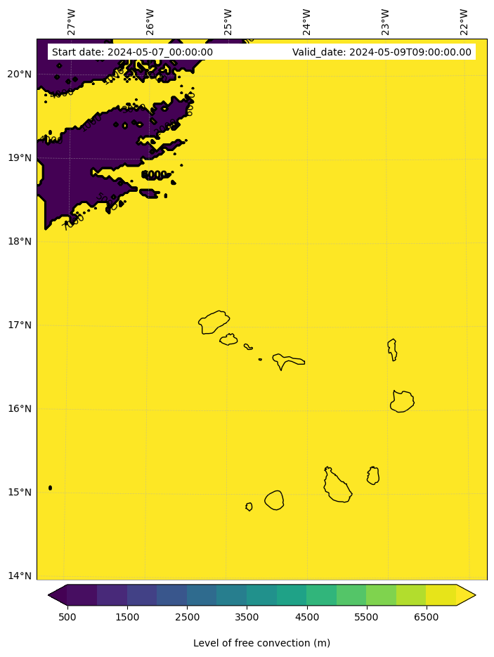 - Level of free convection (m)