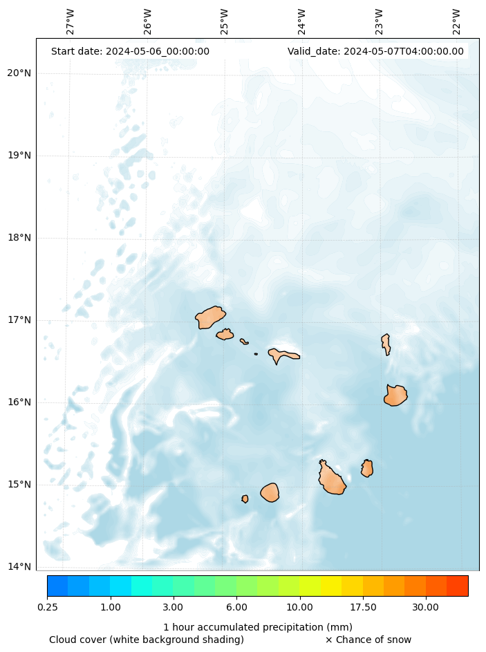 - Snow mixing ratio (g kg¯¹)