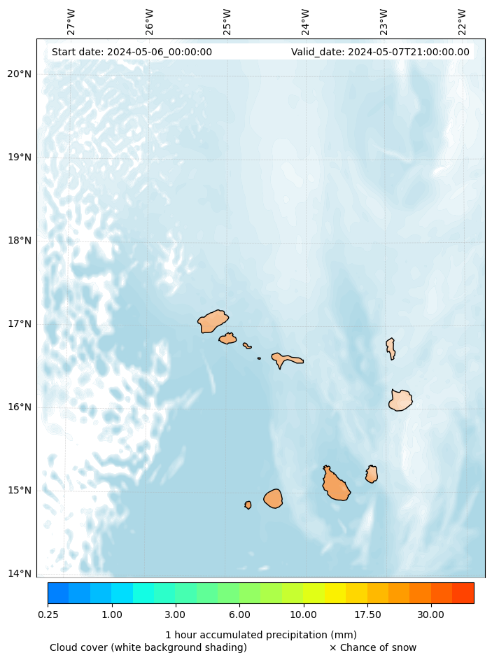 - Snow mixing ratio (g kg¯¹)
