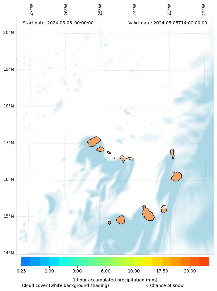 - Snow mixing ratio (g kg¯¹)