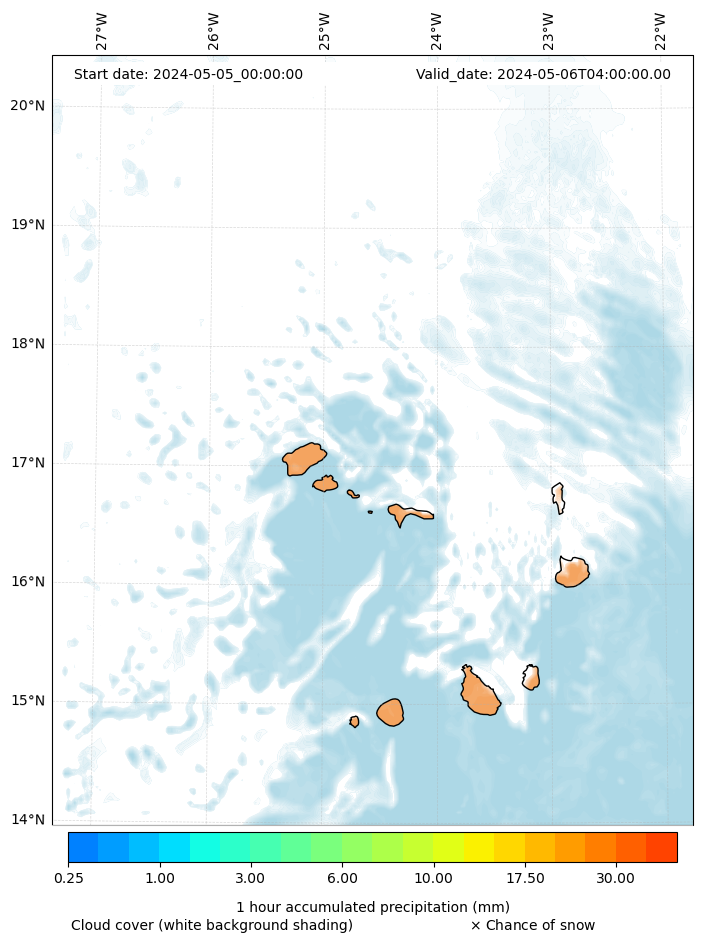 - Snow mixing ratio (g kg¯¹)