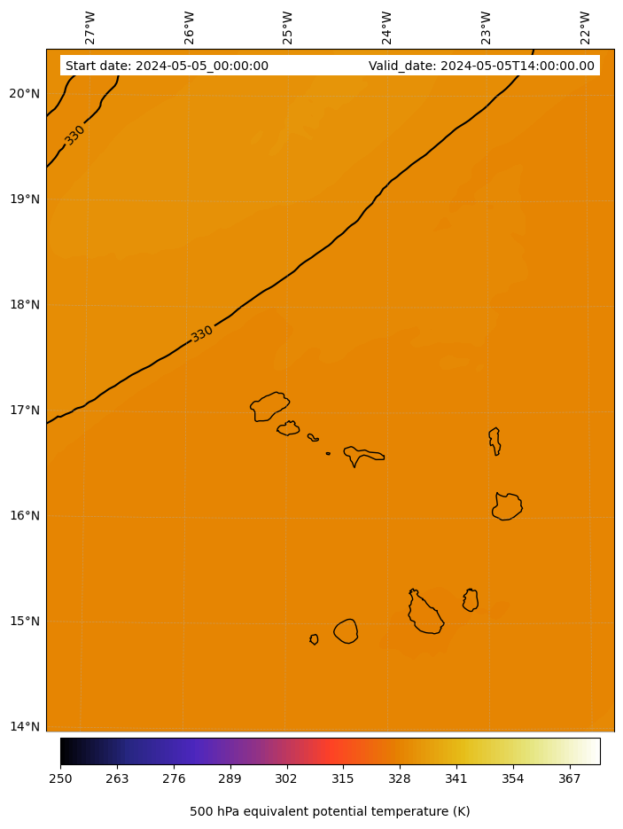 - Equivalent Potential Temperature (K)