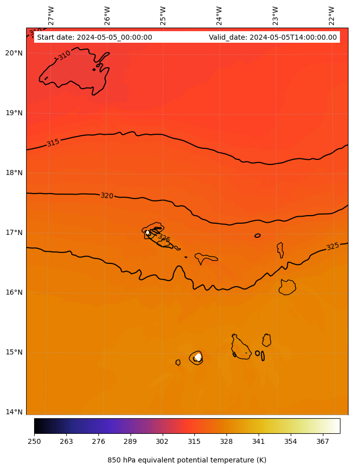 - Equivalent Potential Temperature (K)