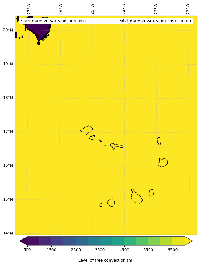 • Level of free convection (m)