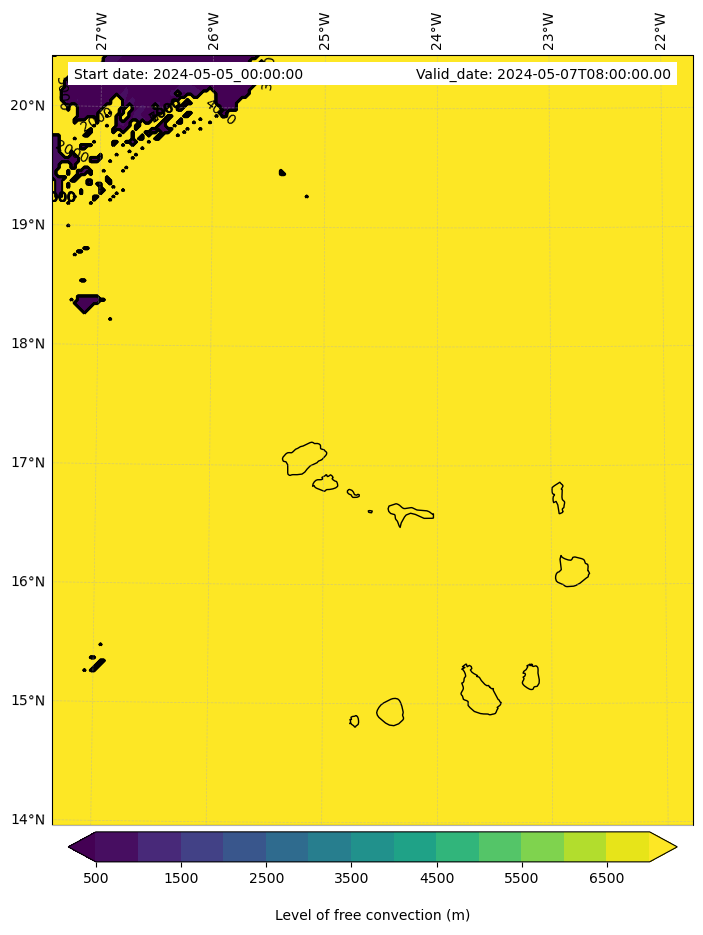 - Level of free convection (m)