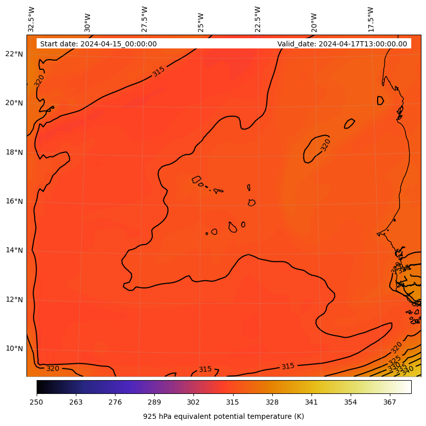 - Equivalent Potential Temperature (K)
