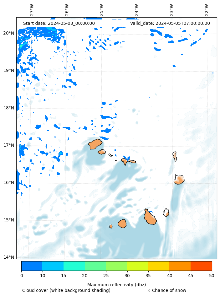 - Snow mixing ratio (g kg¯¹)