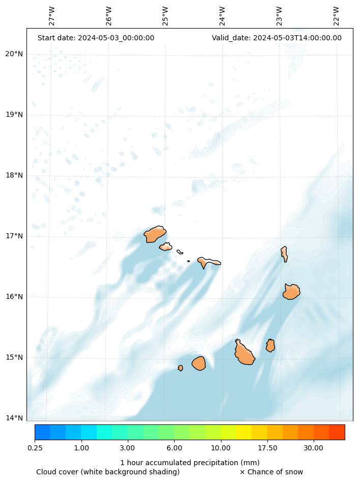 - Snow mixing ratio (g kg¯¹)