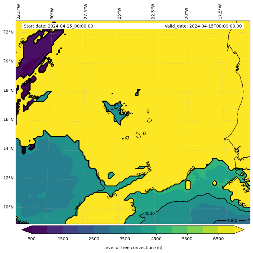 - Level of free convection (m)