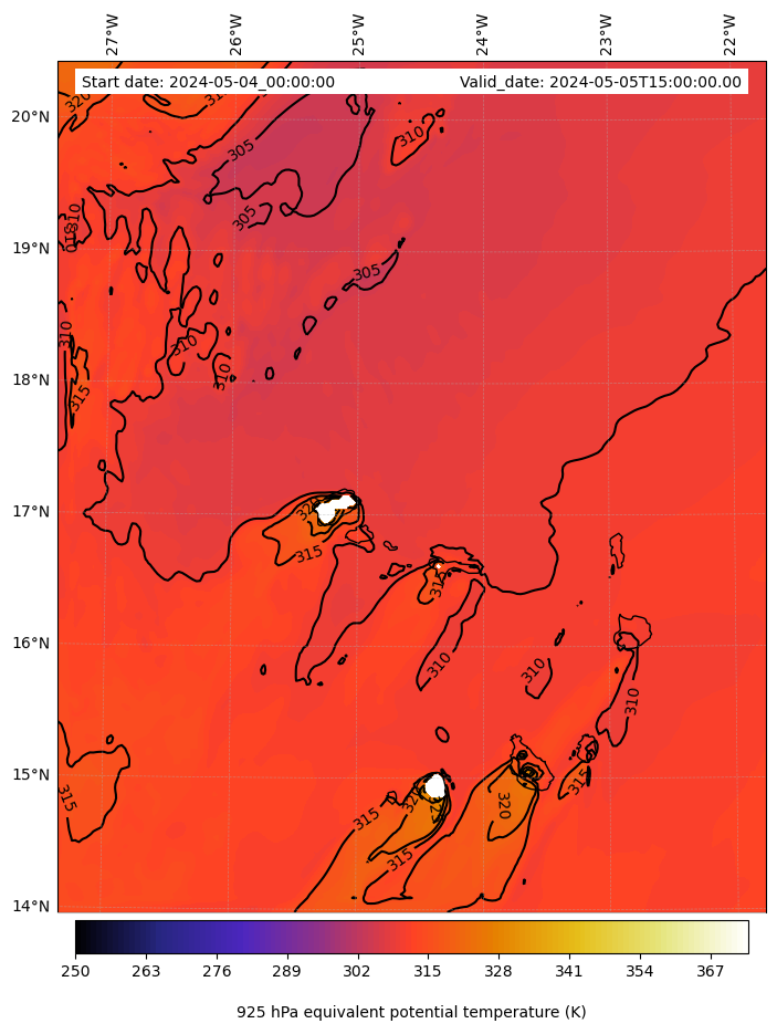 - Equivalent Potential Temperature (K)