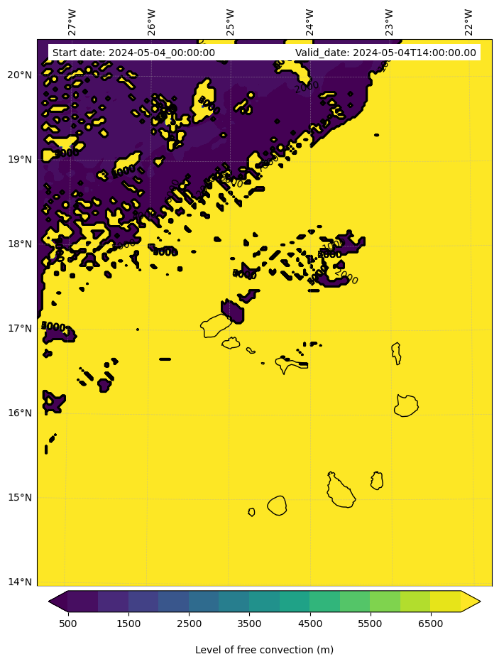 • Level of free convection (m)