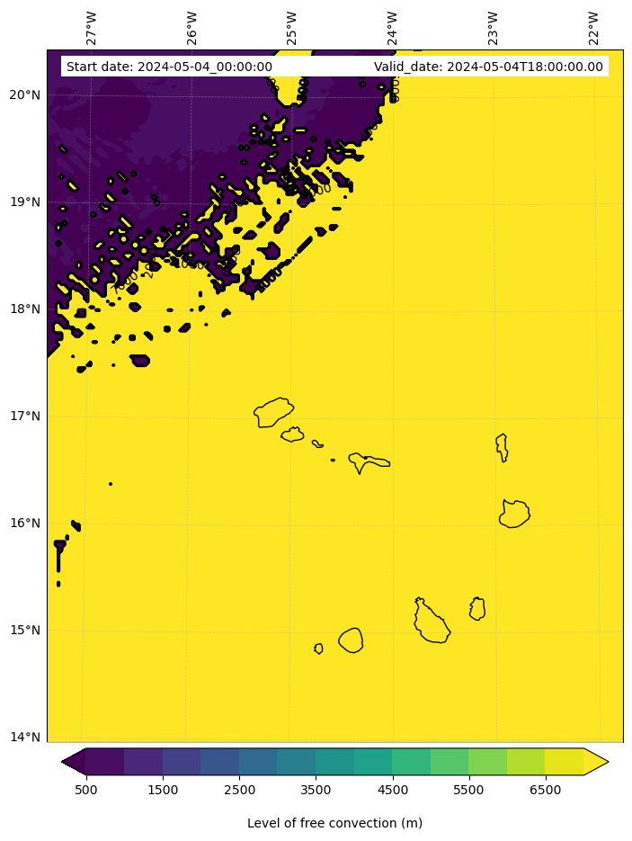 • Level of free convection (m)