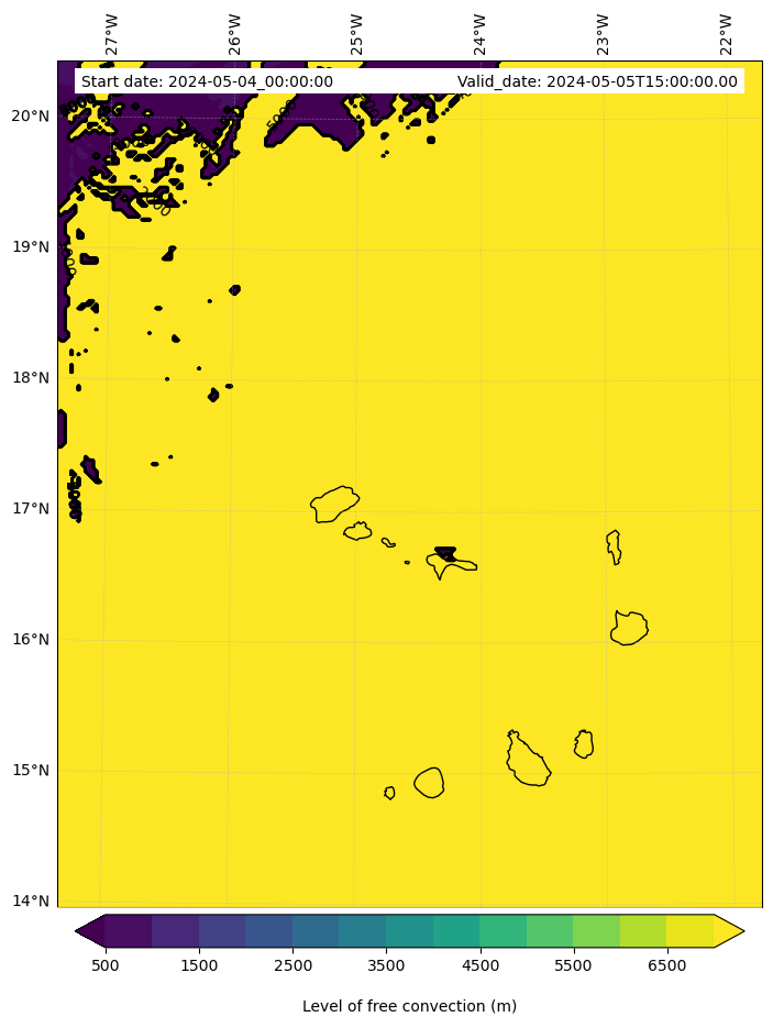• Level of free convection (m)