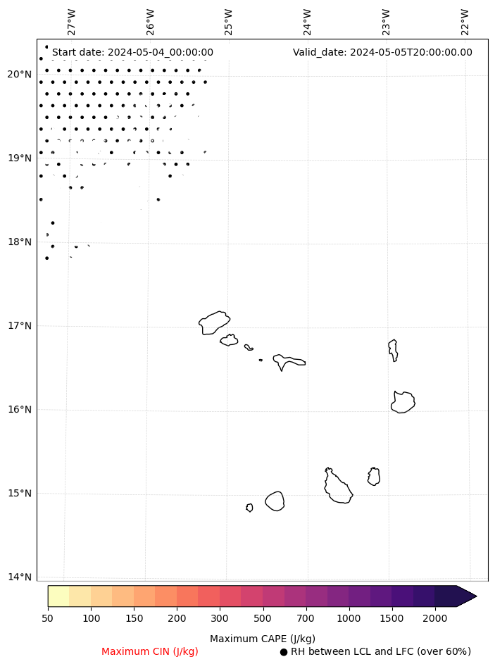 • Maximum CAPE (J/Kg)