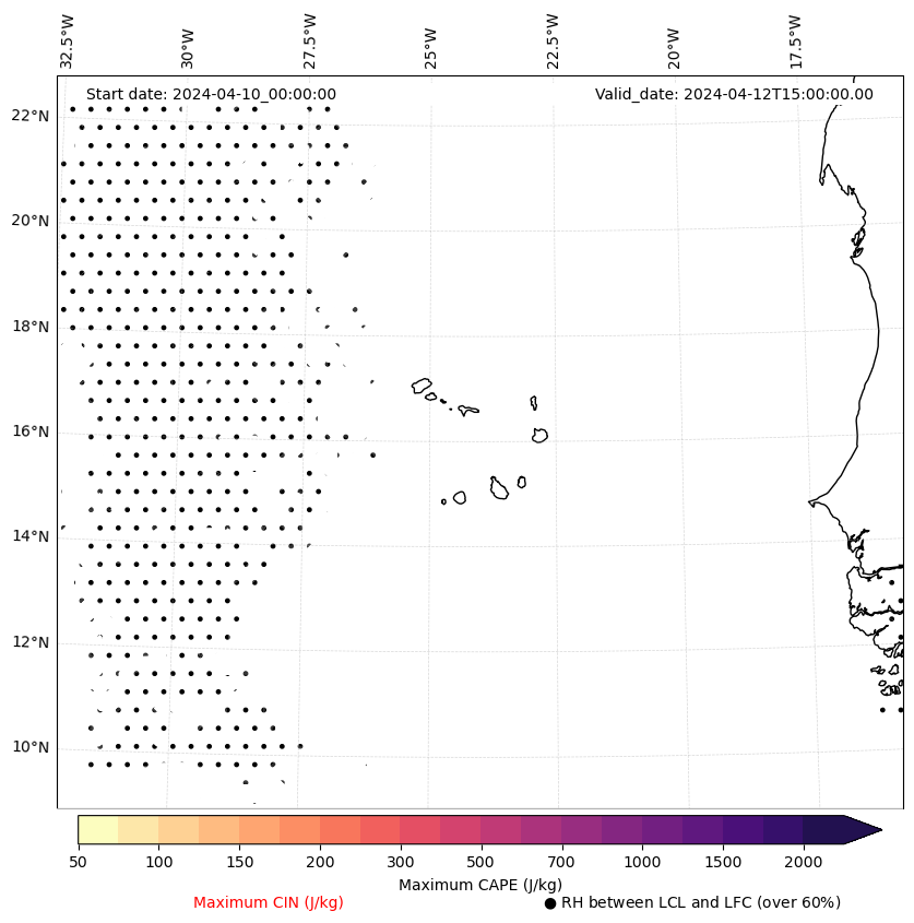 • Maximum CAPE (J/Kg)