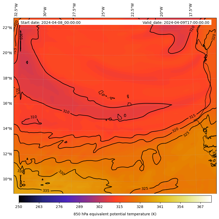 - Equivalent Potential Temperature (K)