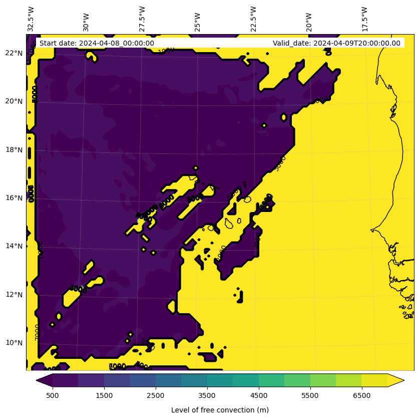 • Level of free convection (m)
