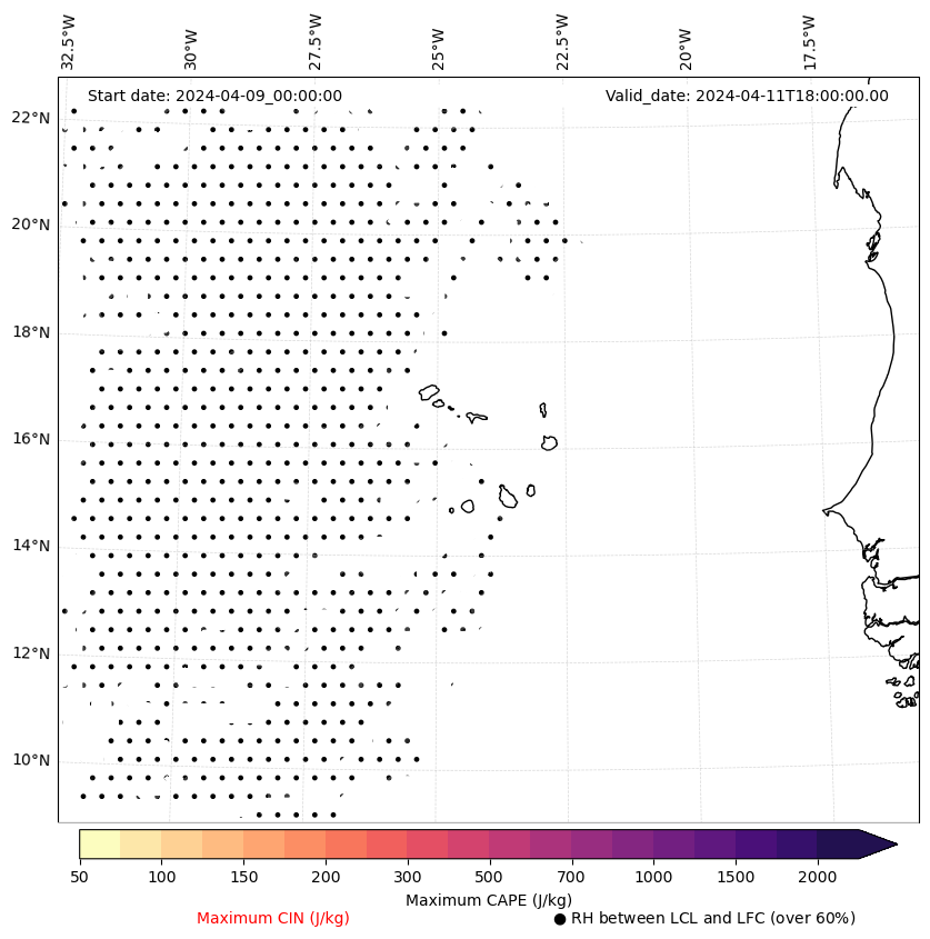• Maximum CAPE (J/Kg)