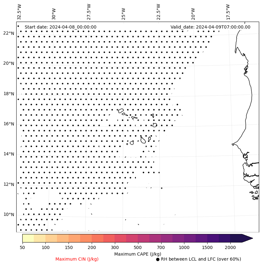 • Maximum CAPE (J/Kg)