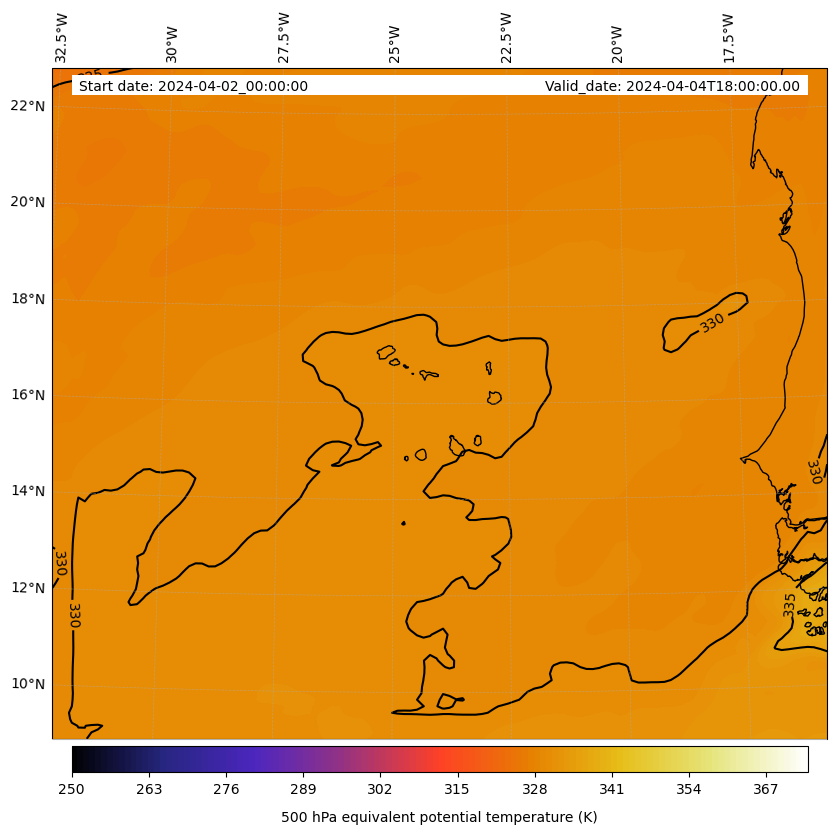 - Equivalent Potential Temperature (K)