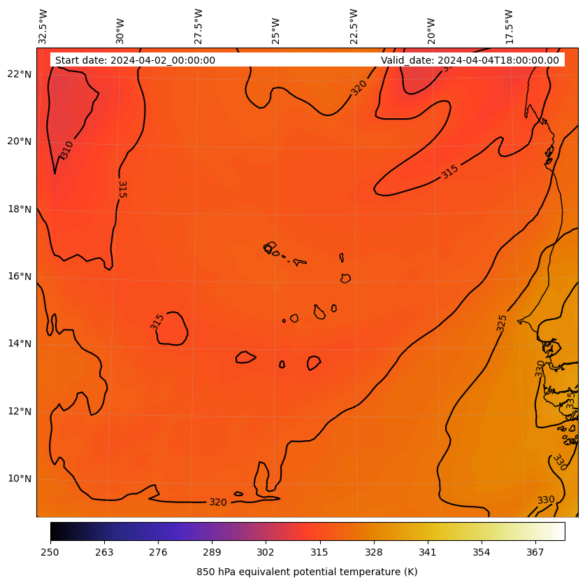 - Equivalent Potential Temperature (K)