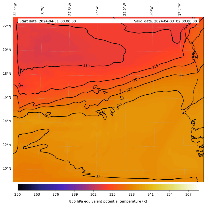 - Equivalent Potential Temperature (K)