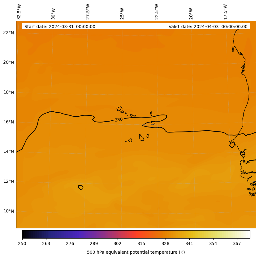 - Equivalent Potential Temperature (K)