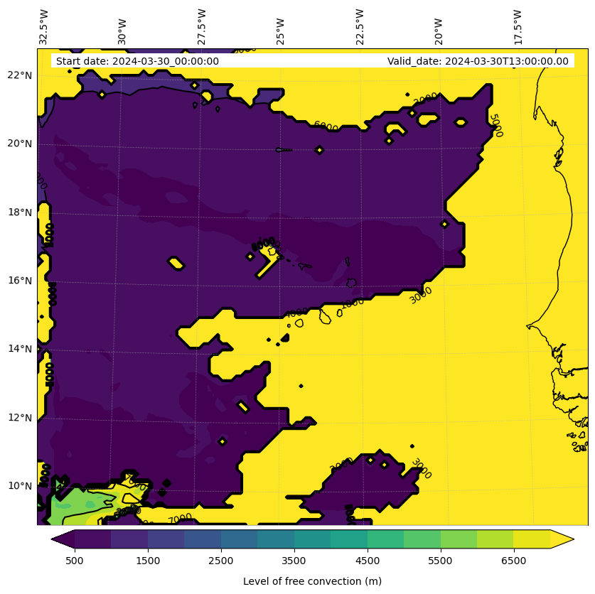 - Level of free convection (m)