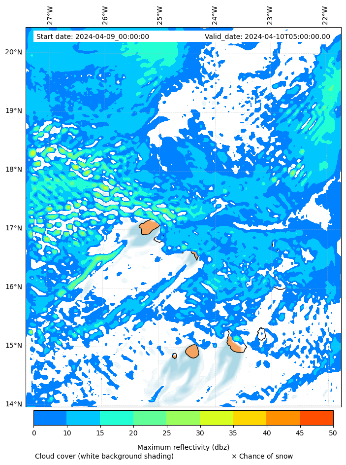 - Snow mixing ratio (g kg¯¹)