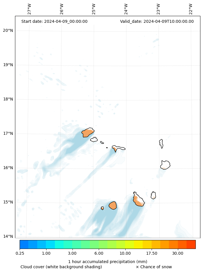 - Snow mixing ratio (g kg¯¹)