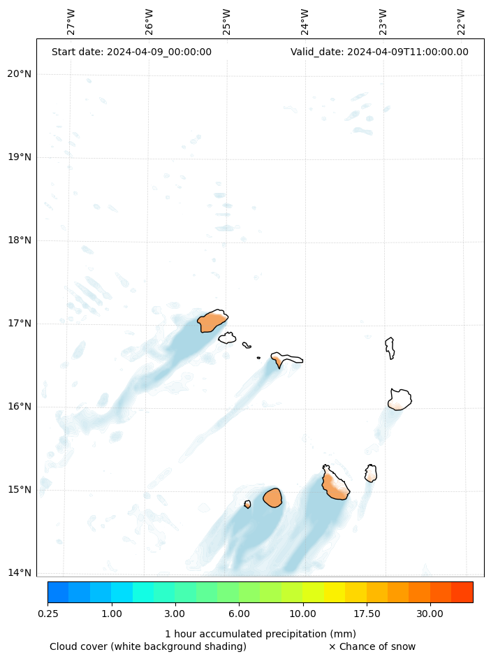 - Snow mixing ratio (g kg¯¹)
