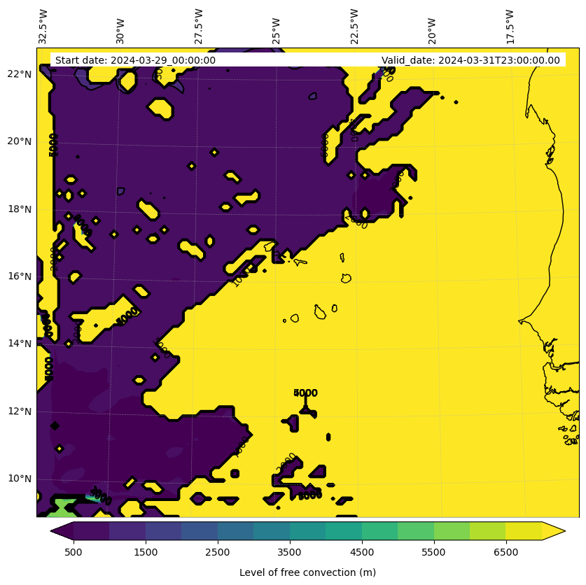 - Level of free convection (m)