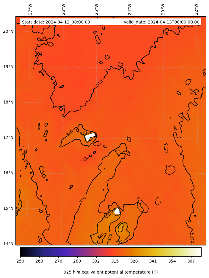 - Equivalent Potential Temperature (K)