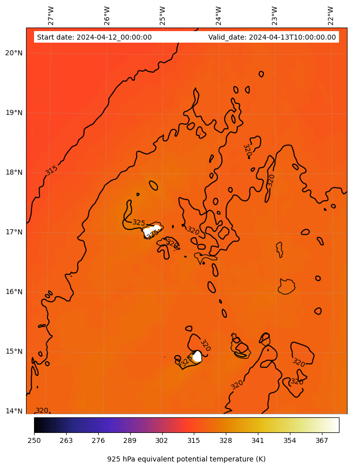 - Equivalent Potential Temperature (K)