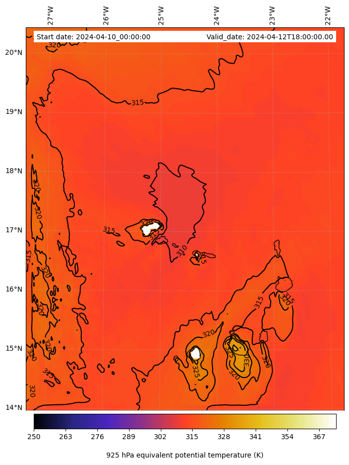 - Equivalent Potential Temperature (K)