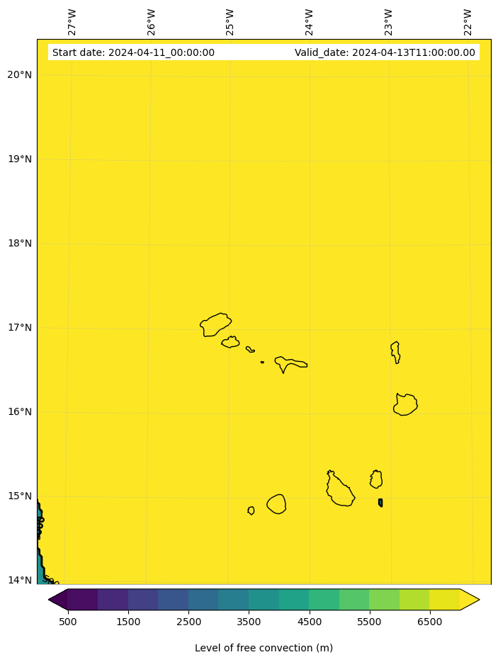 - Level of free convection (m)