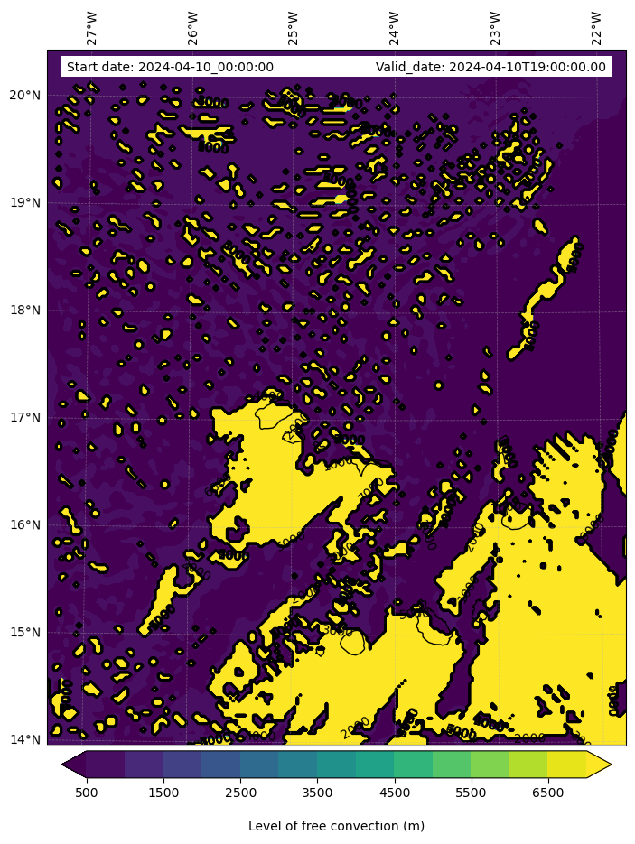 - Level of free convection (m)