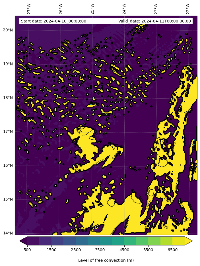 • Level of free convection (m)