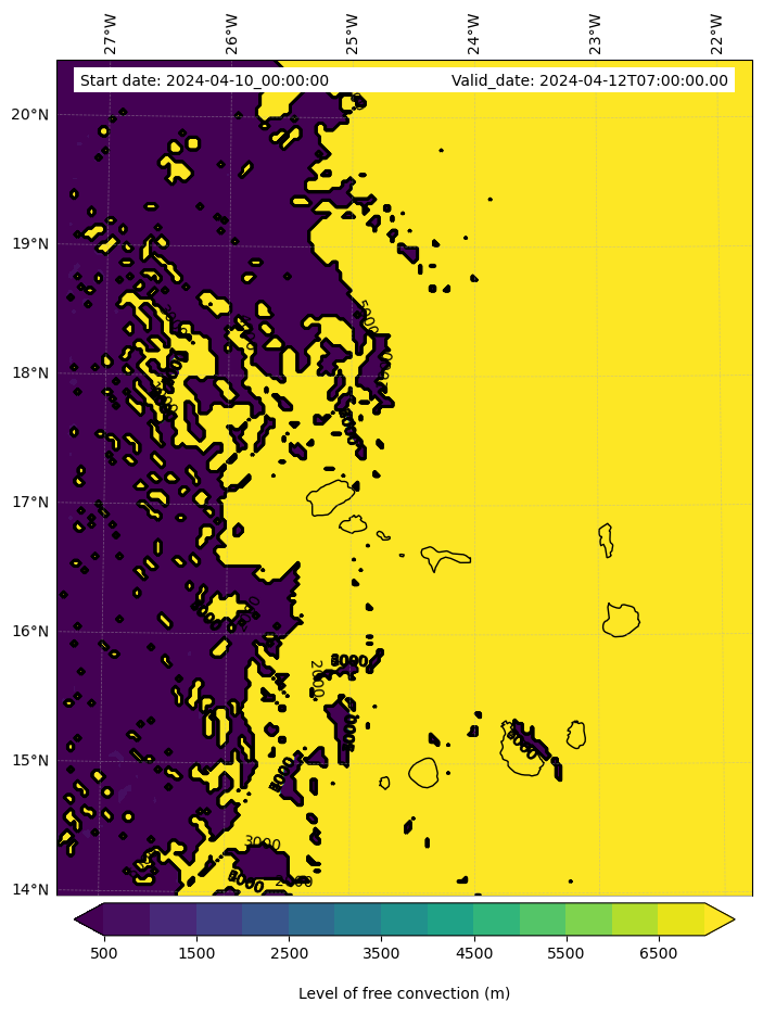 - Level of free convection (m)