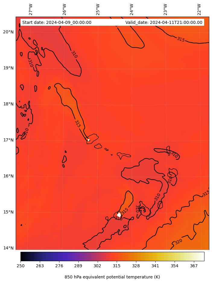 - Equivalent Potential Temperature (K)