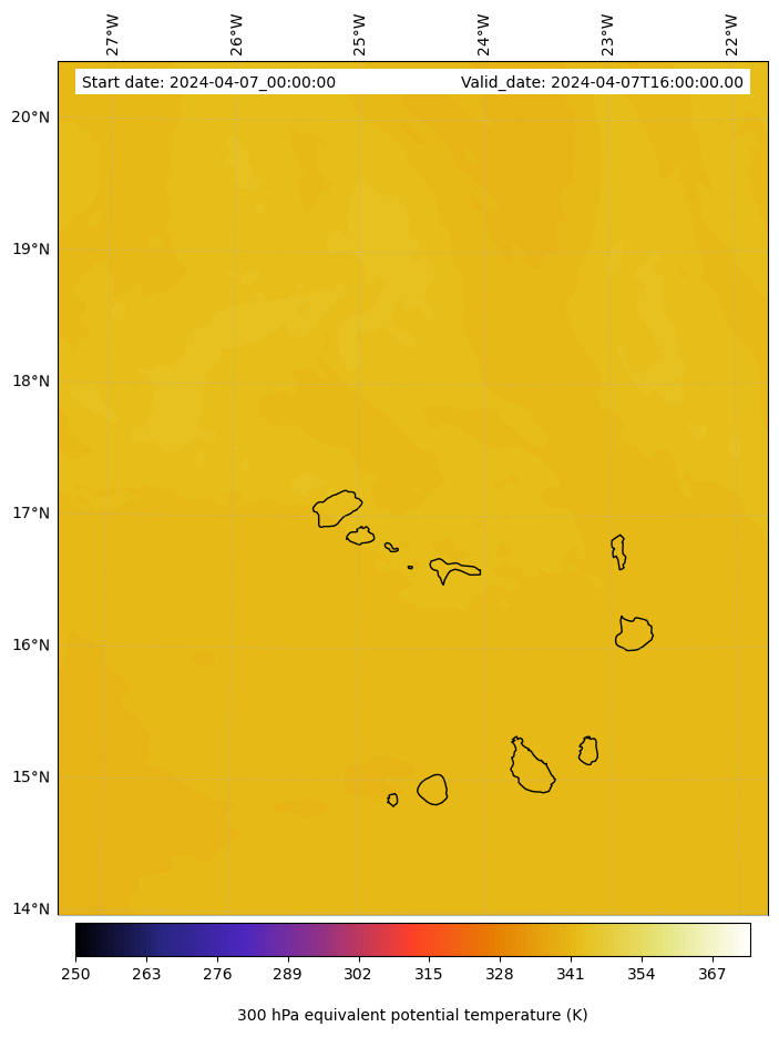 - Equivalent Potential Temperature (K)