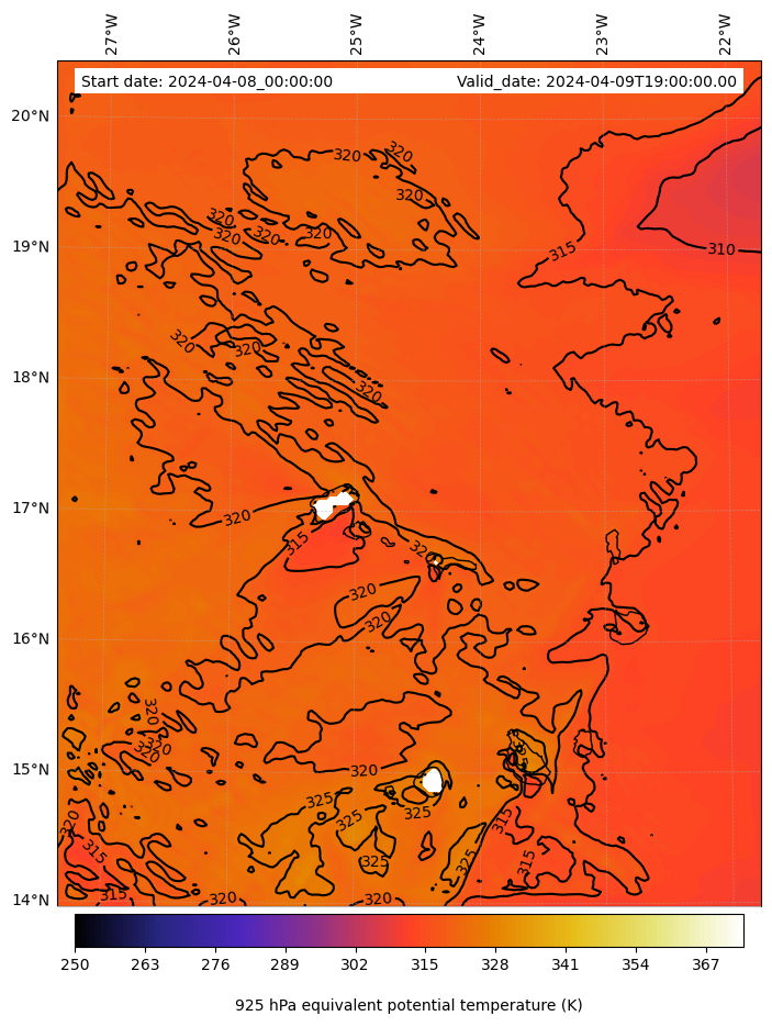 - Equivalent Potential Temperature (K)