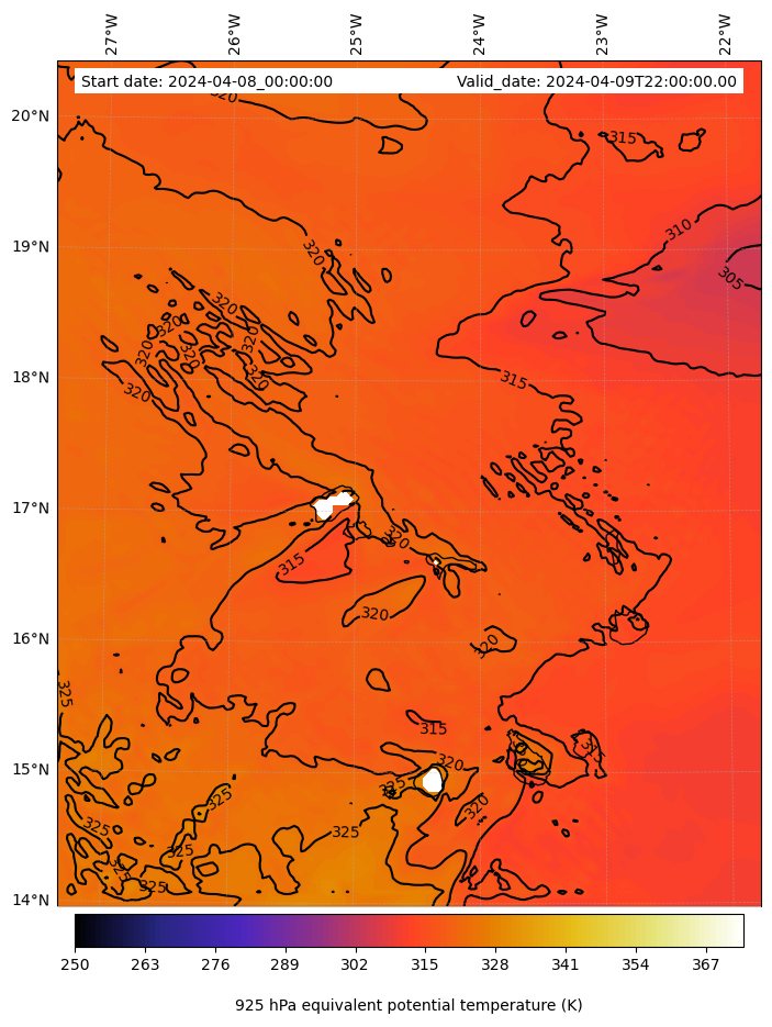 - Equivalent Potential Temperature (K)