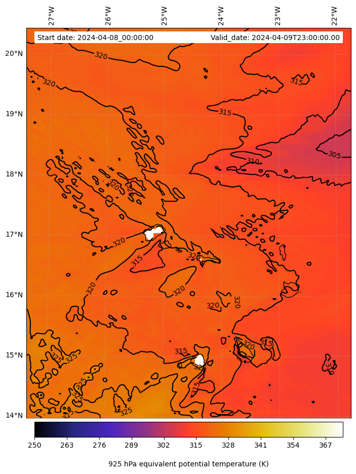 - Equivalent Potential Temperature (K)