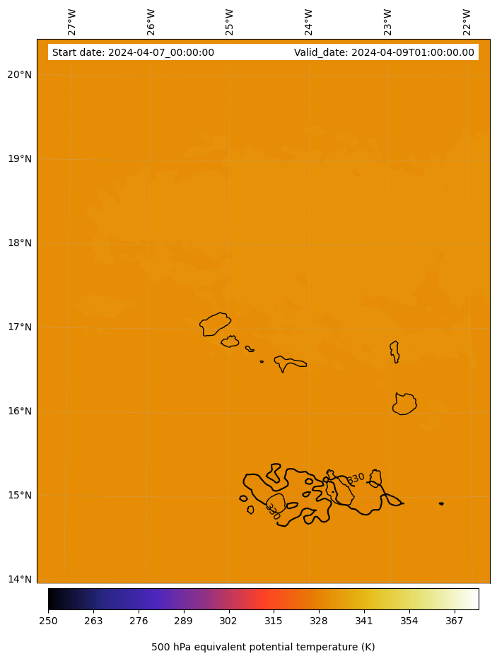 - Equivalent Potential Temperature (K)