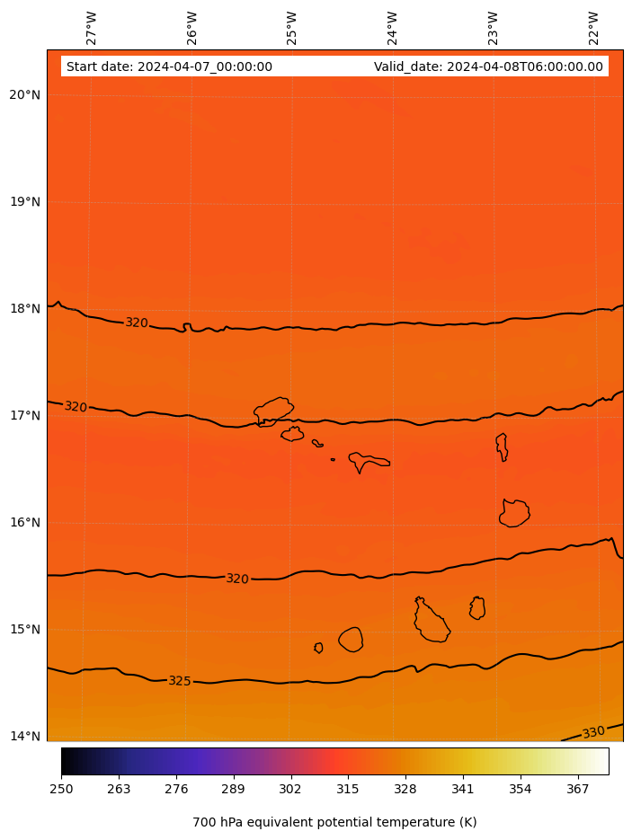 - Equivalent Potential Temperature (K)