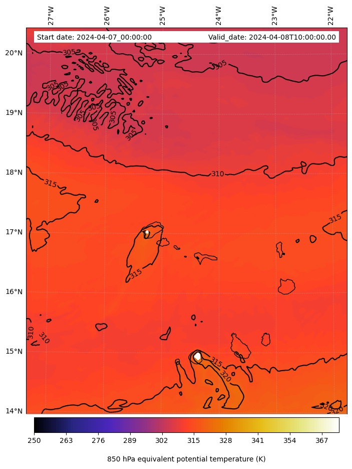 - Equivalent Potential Temperature (K)