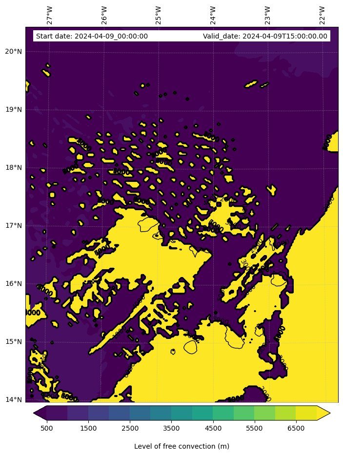 - Level of free convection (m)