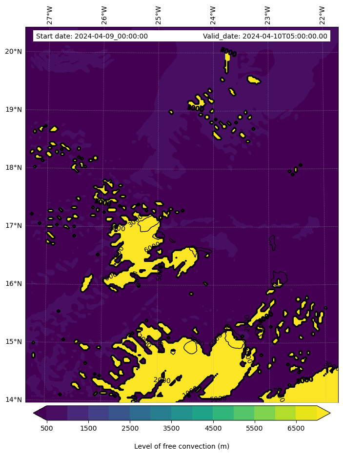 - Level of free convection (m)