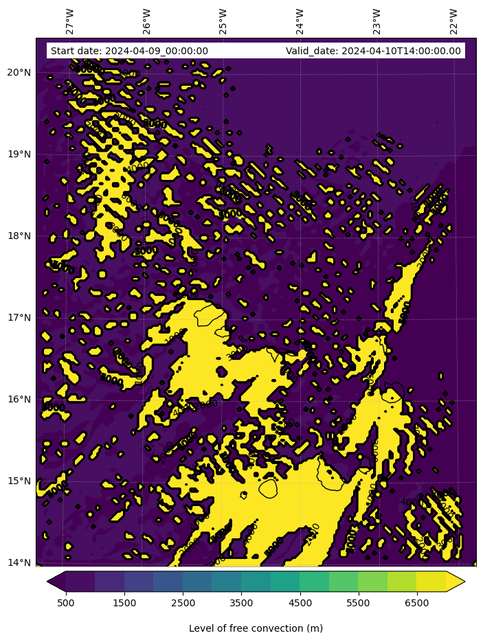 - Level of free convection (m)
